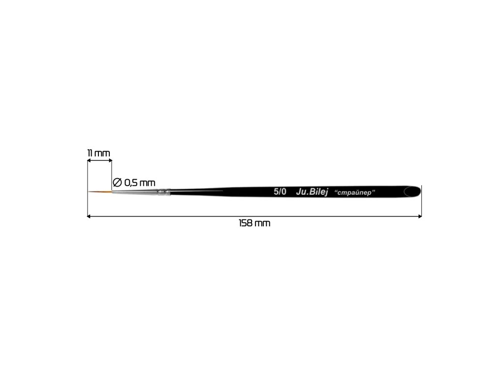 Délka vlasu 11 mm. Tloušťka vlasu 0,5 mm. Syntetický štětec pro tenké linie